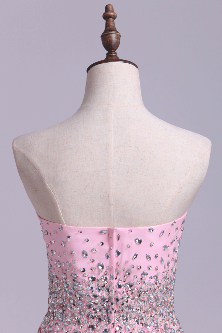2022 A Line Sweetheart Beaded Bodice Low Back Dress Short With Chiffon Skirt