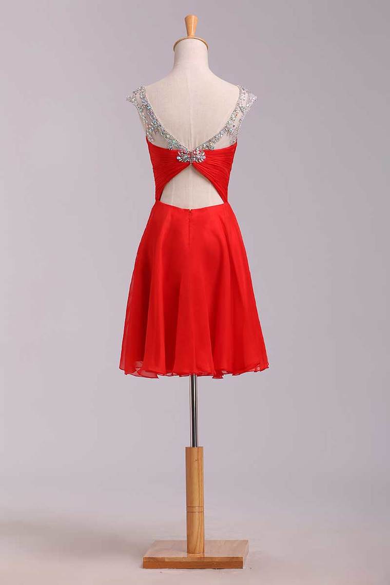 2022 Cute Homecoming Dresses Short/Mini Rulffled&Beaded Chiffon Dark Royal Blue