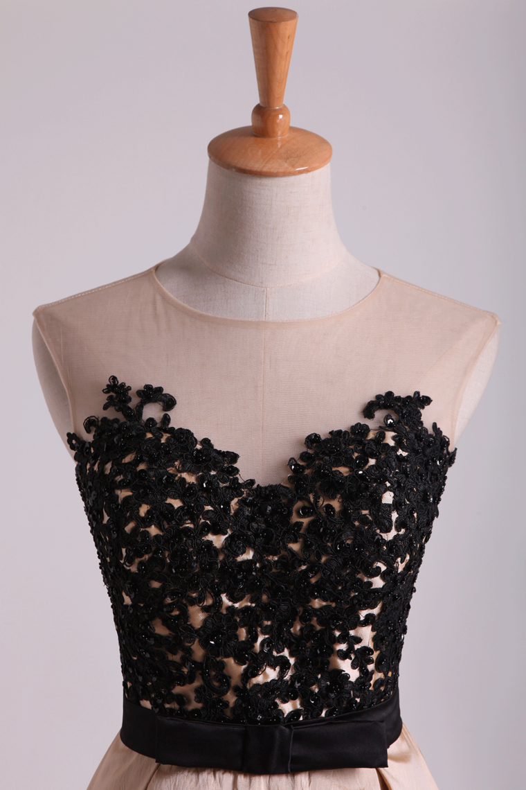 2022 Asymmetrical Bateau Prom Dresses Taffeta With Applique And Sash