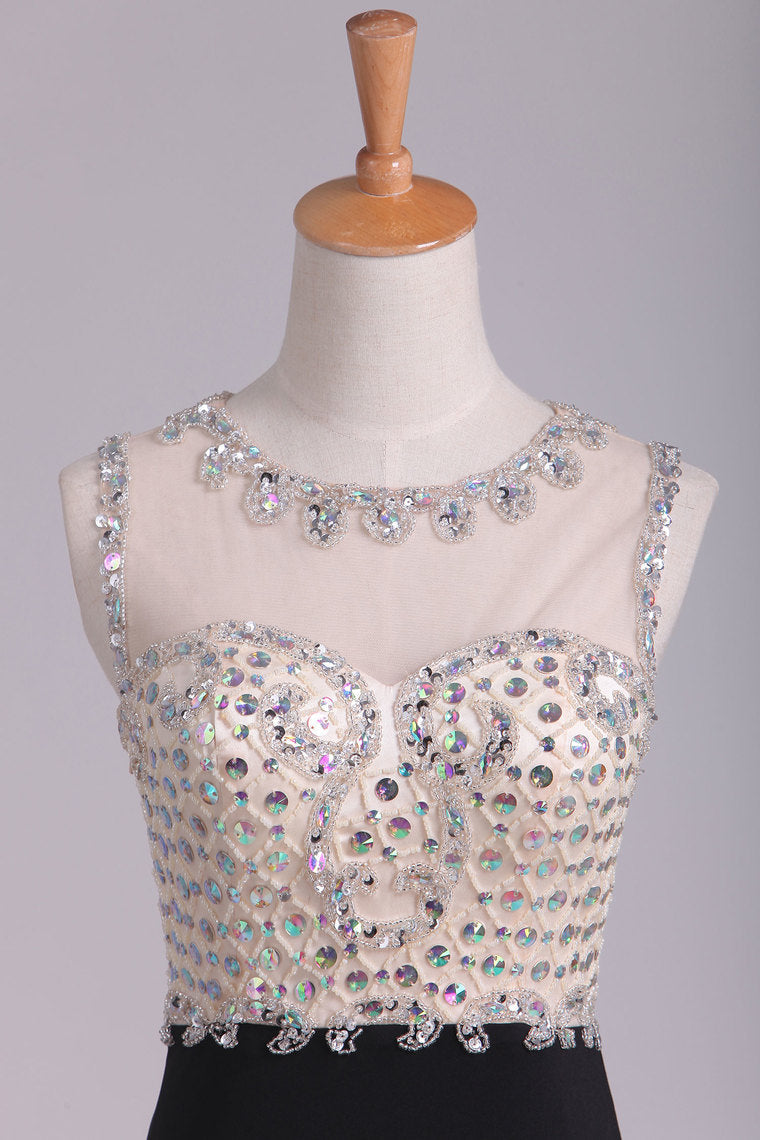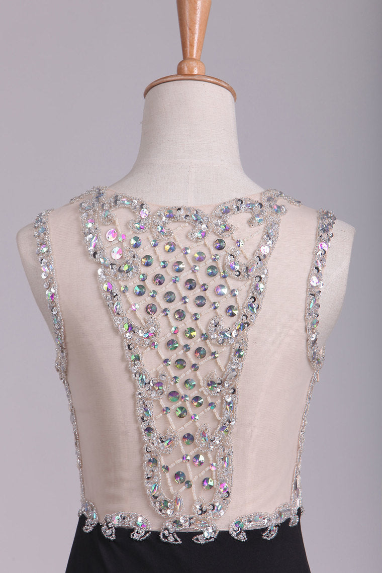 2022 Black Scoop Prom Dresses Sheath With Beading And Slit Spandex