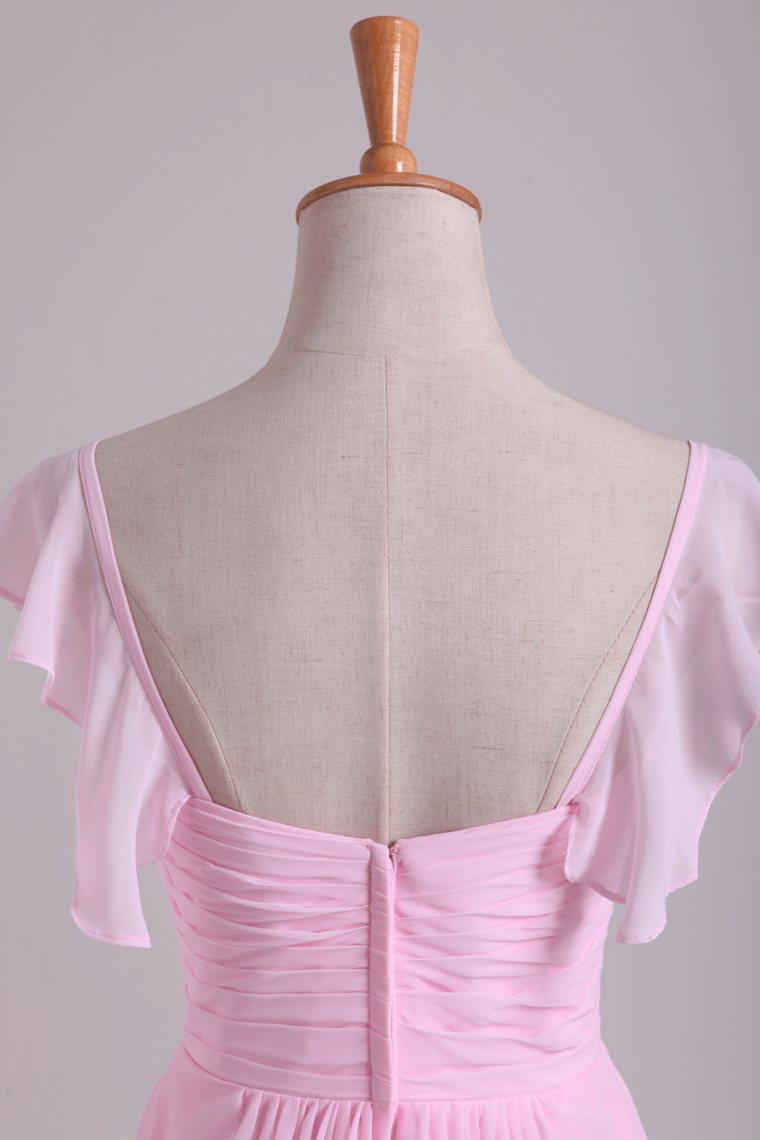 2022 Bridesmaid Dresses A Line V Neck Knee Length Chiffon