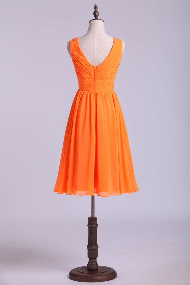 2022 Bridesmaid Dresses A Line V Neck Knee Length Chiffon