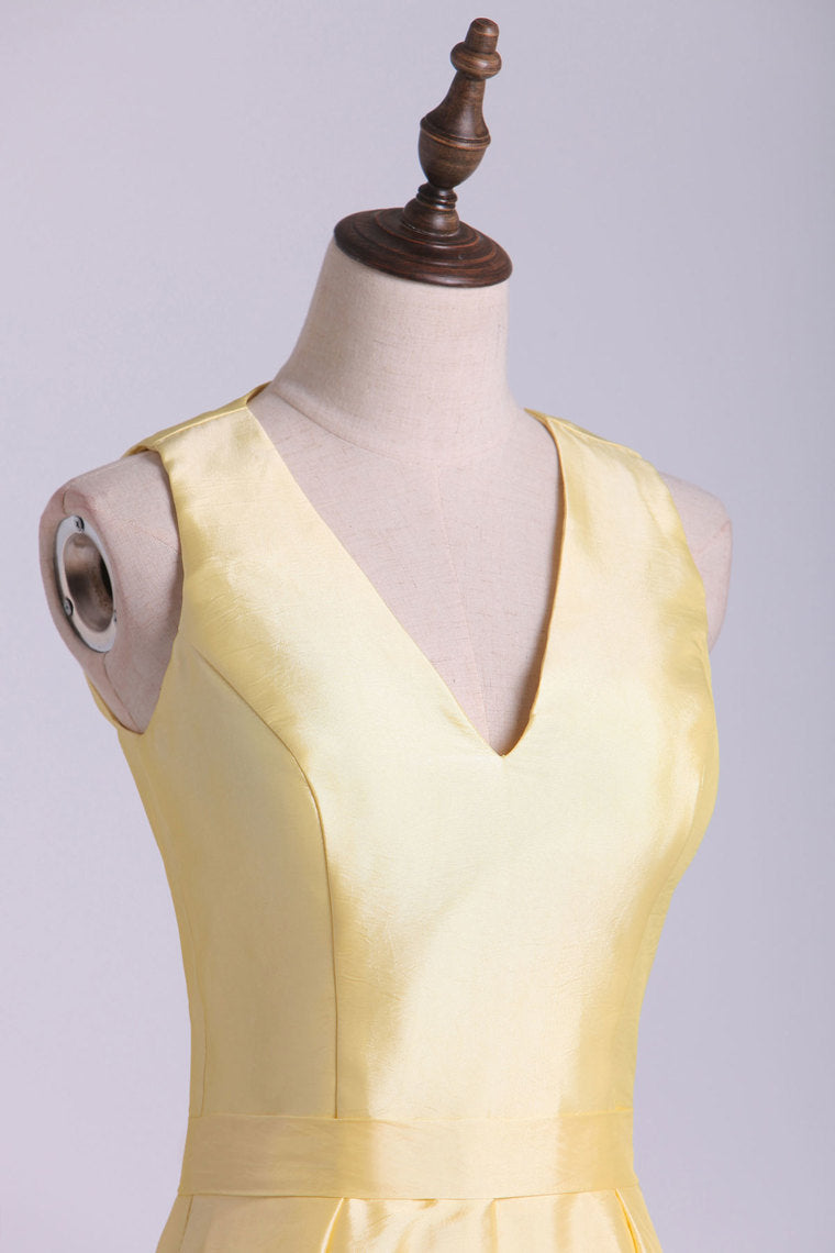 2022 Bridesmaid Dresses A-Line V Neck Taffeta