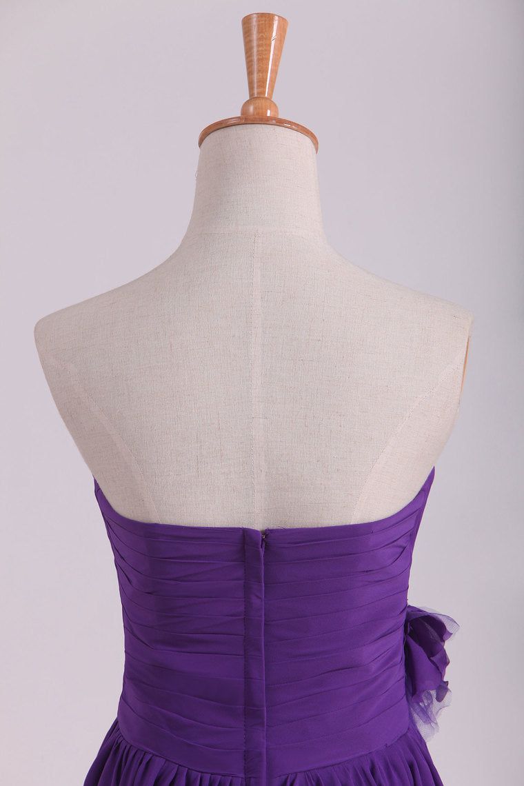 2022 Bridesmaid Dresses Sweetheart Knee Length Chiffon With Handmade Flower A Line