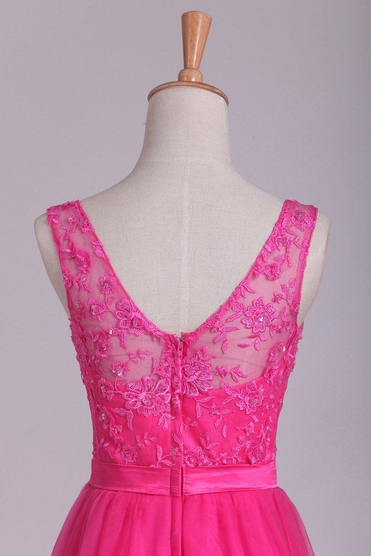 2022 Bridesmaid Dresses V Neck A Line With Embroidery And Sash Tulle
