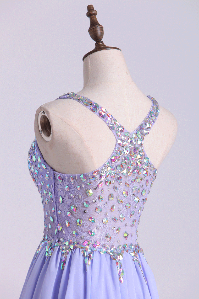 2022 Delicate Halter Princess Homecoming Dresses Lace&Chiffon Beaded Bodice
