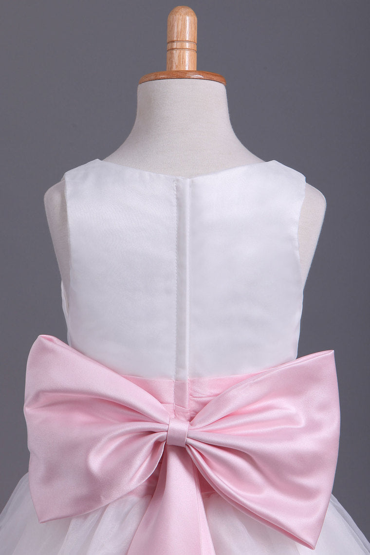 2022 Flower Girl Dresses A-Line Scoop Ankle Length Organza