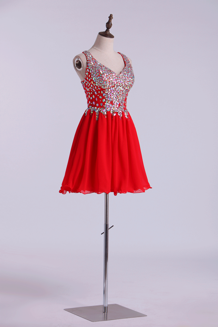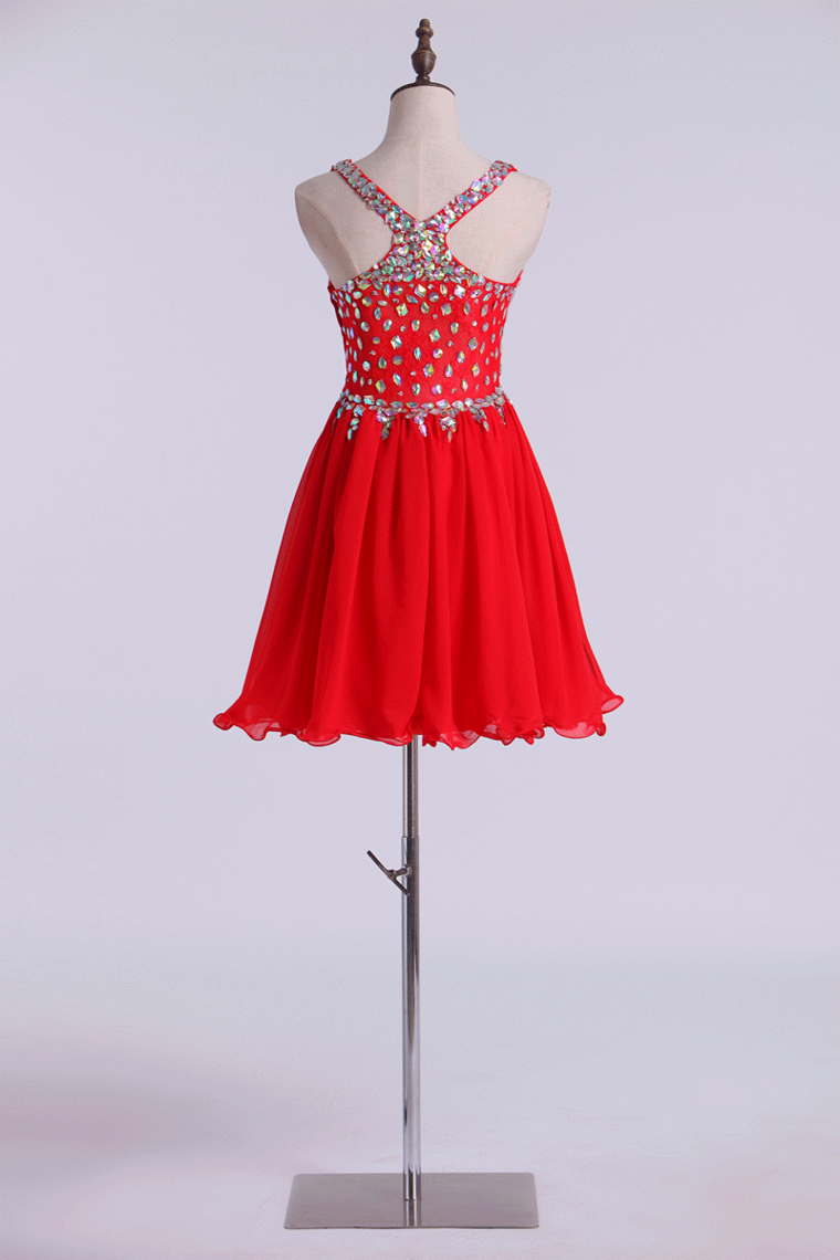 2022 Halter A Line/Princess Homecoming Dresses Lace&Chiffon Beaded Bodice Mini