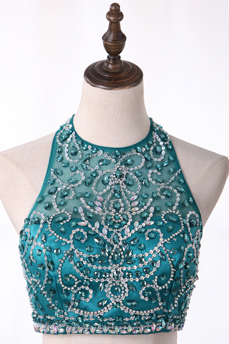 Halter Homecoming Dresses Two-Piece Beaded Bodice Tulle Short