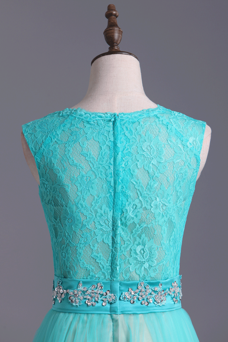 2022 Homecoming Dresses Bateau Tulle & Lace A-Line With Beads
