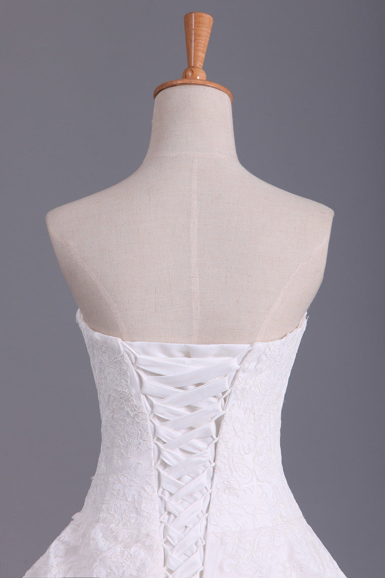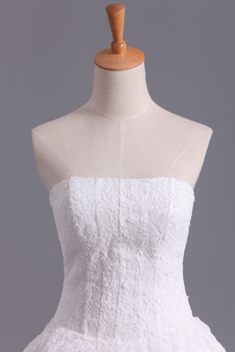 2022 Hot Wedding Dresses A Line Strapless Tulle With Applique Court Train