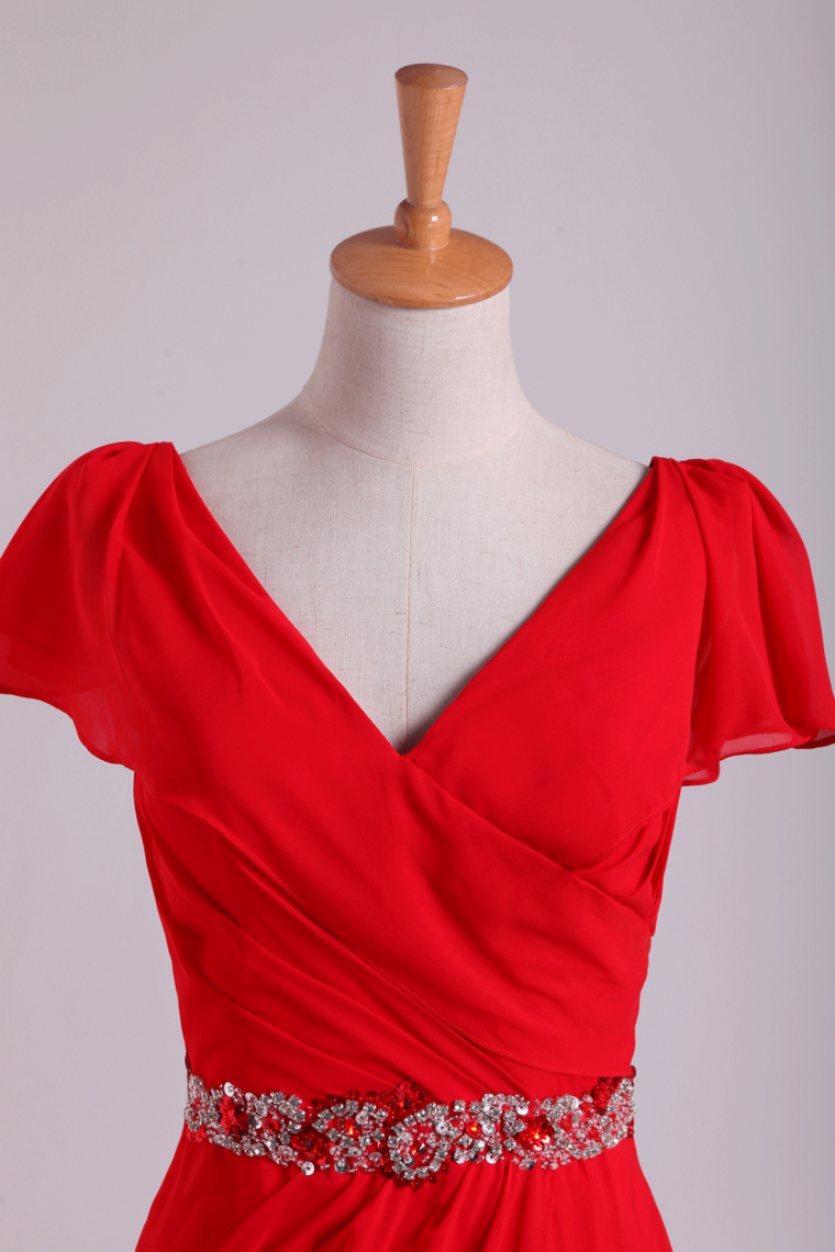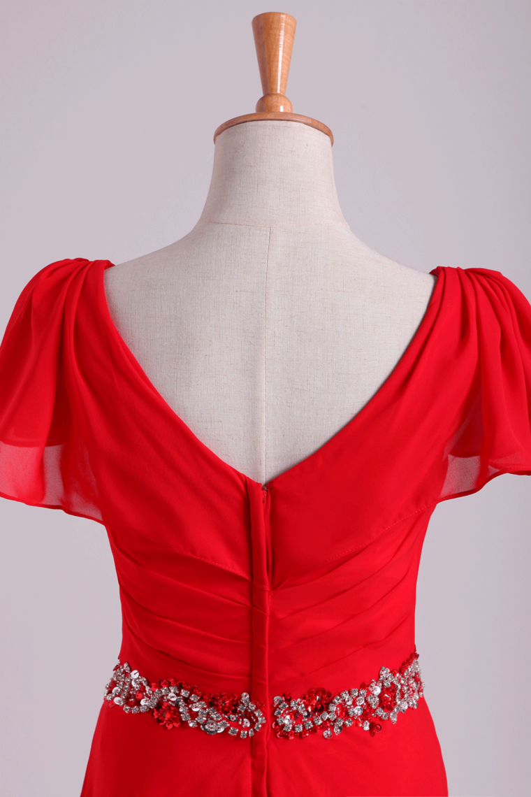 2022 Mother Of The Bride Dresses V-Neck Floor-Length Chiffon With Beading Waist Line