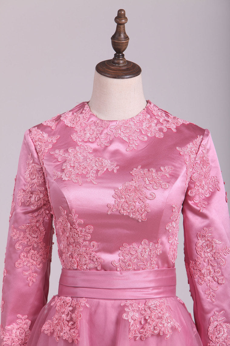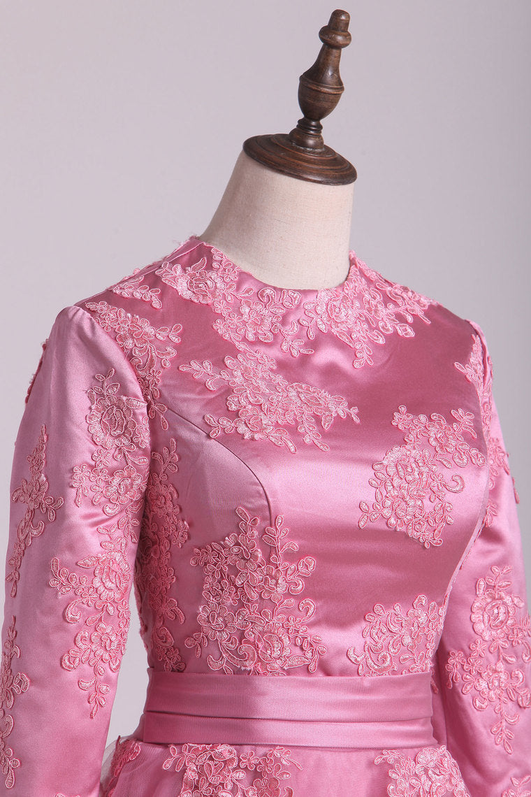 2022 Muslim Scoop Mermaid/Trumpet Satin With Applique Prom Dresses