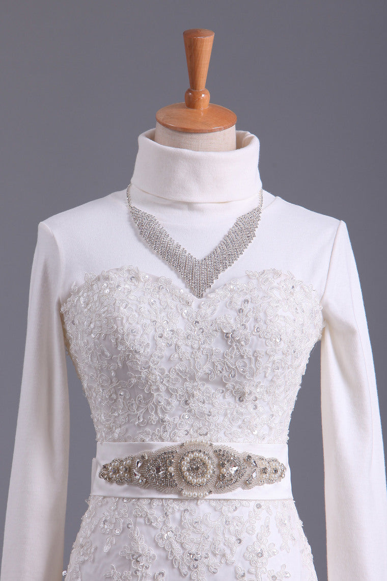 2022 Muslim Wedding Dresses Mermaid High Neck Tulle With Applique Court Train