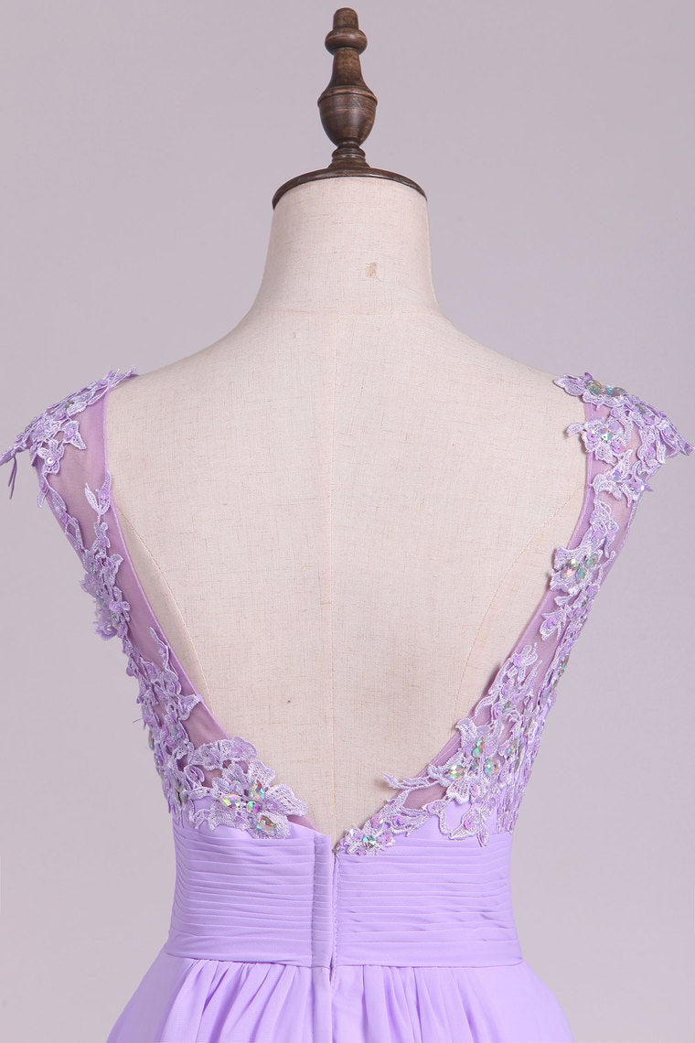 2022 New Arrival Bateau Prom Dresses A Line Chiffon With Applique And Beads