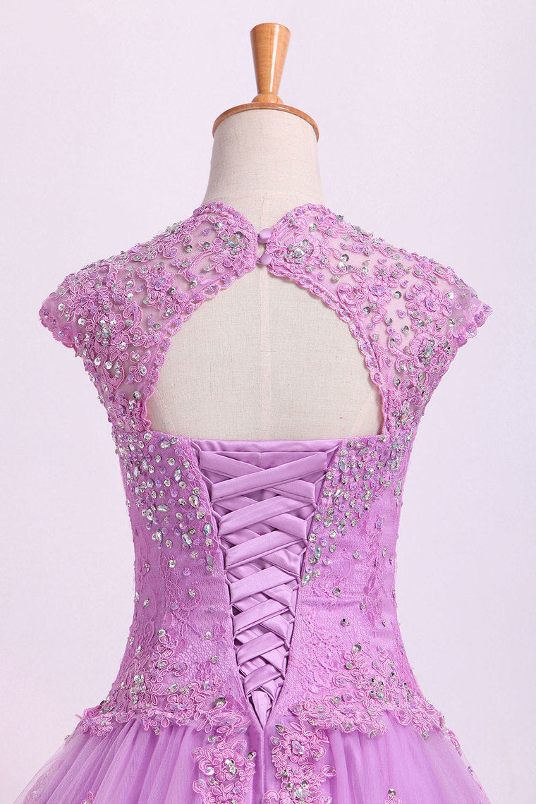 2022 New Arrival Quinceanera Dresses Ball Gown Floor Length Tulle With Beadings&Applique