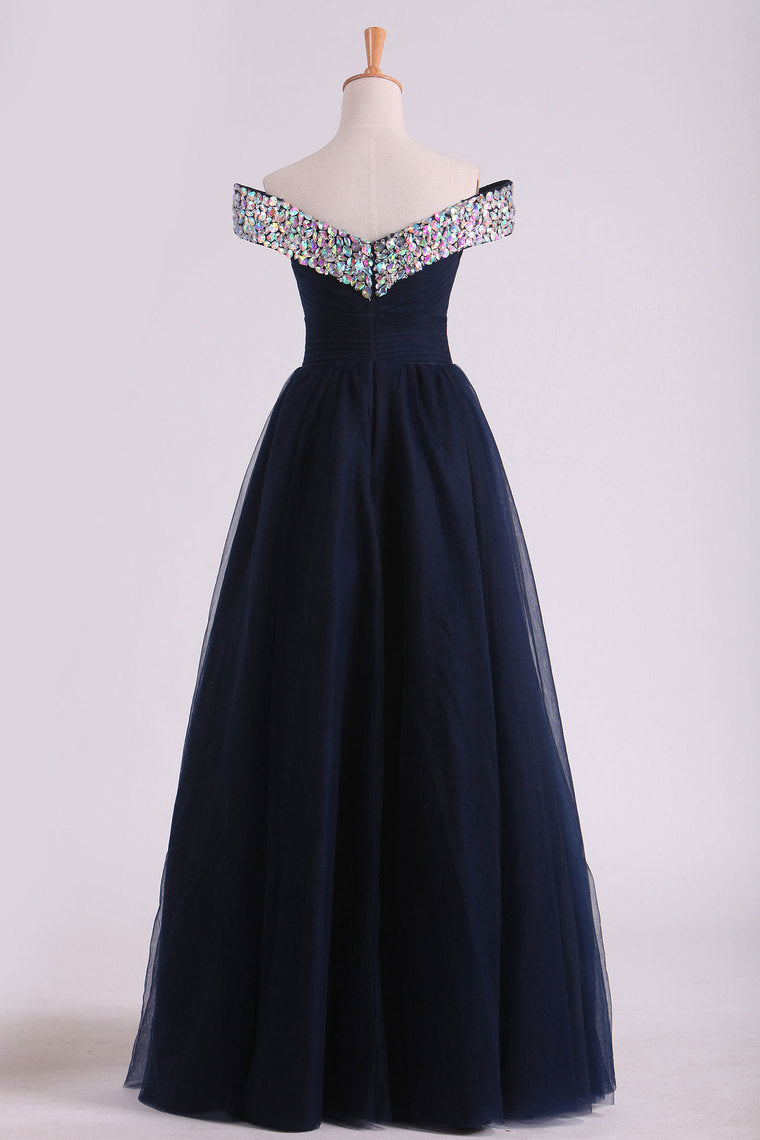 2022 Off The Shoulder With Beading And Ruffles Prom Dresses A Line Tulle