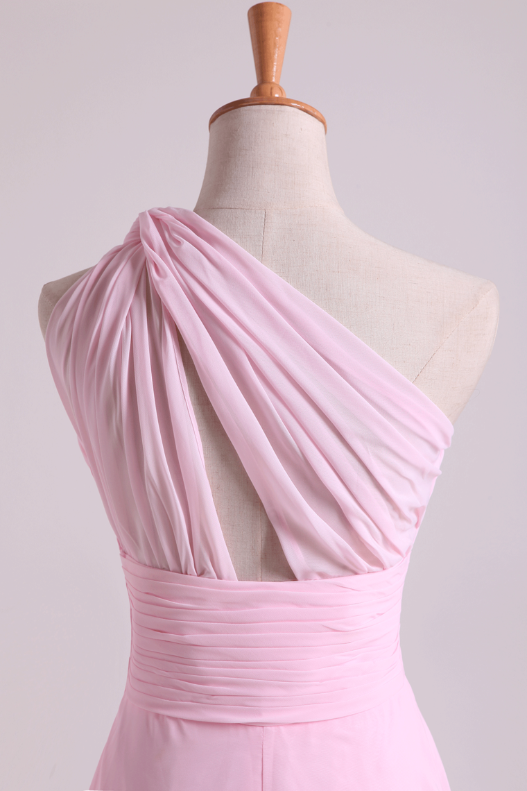 2022 One Shoulder A Line Chiffon Bridesmaid Dresses With Ruffles Pearl Pink