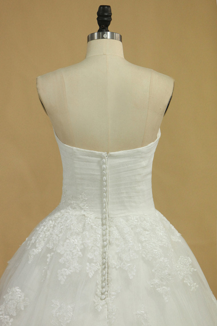 2022 Plus Size Wedding Dresses A-Line Sweetheart Court Train Tulle Applique Covered Button