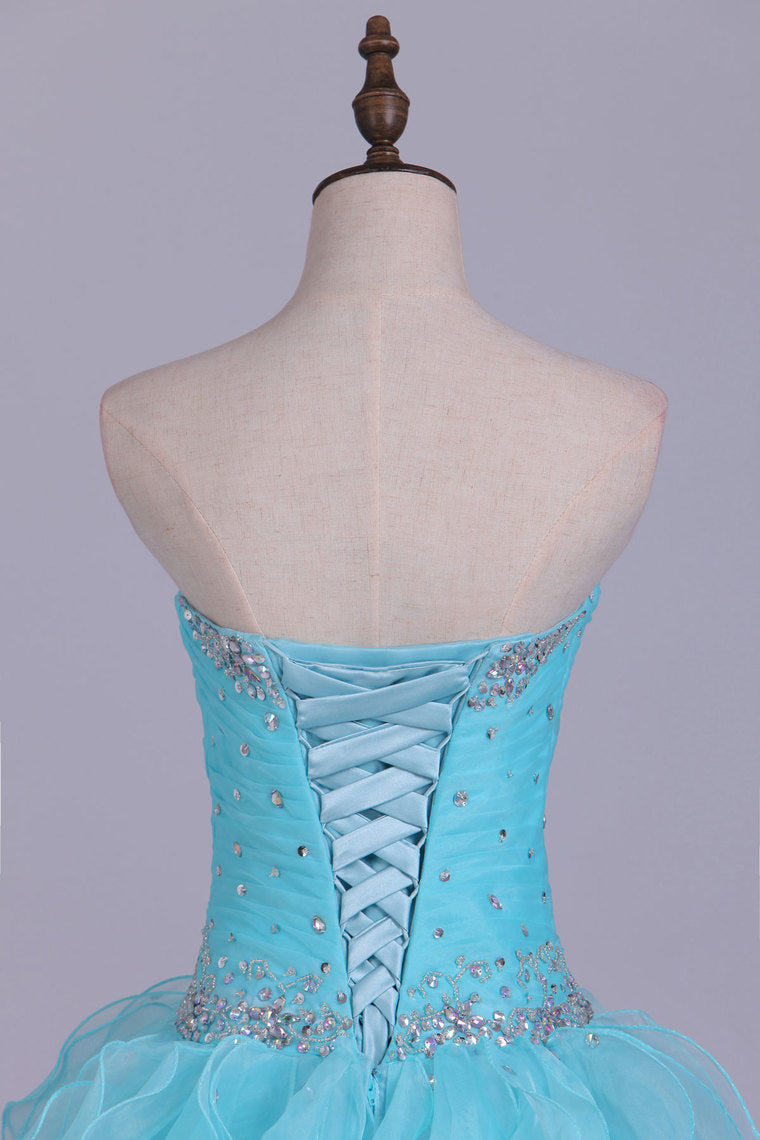 2022 Quinceanera Dresses Ball Gown Sweetheart Floor Length Organza With Beading Sash Ruffles