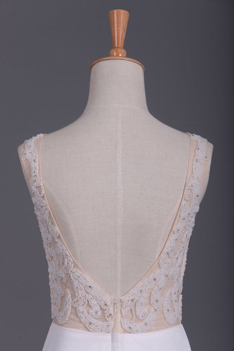 2022 Scoop Beaded Bodice Prom Dresses A Line With Beading White