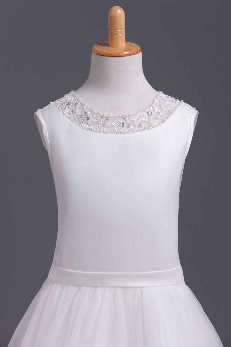 2022 Scoop Flower Girl Dresses A Line Tulle Ankle Length With Applique