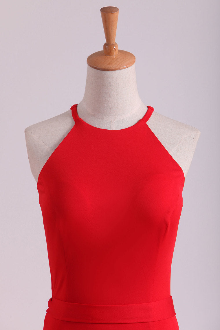 2022 Scoop Mermaid Spandex With Slit Sweep Train Evening Dresses
