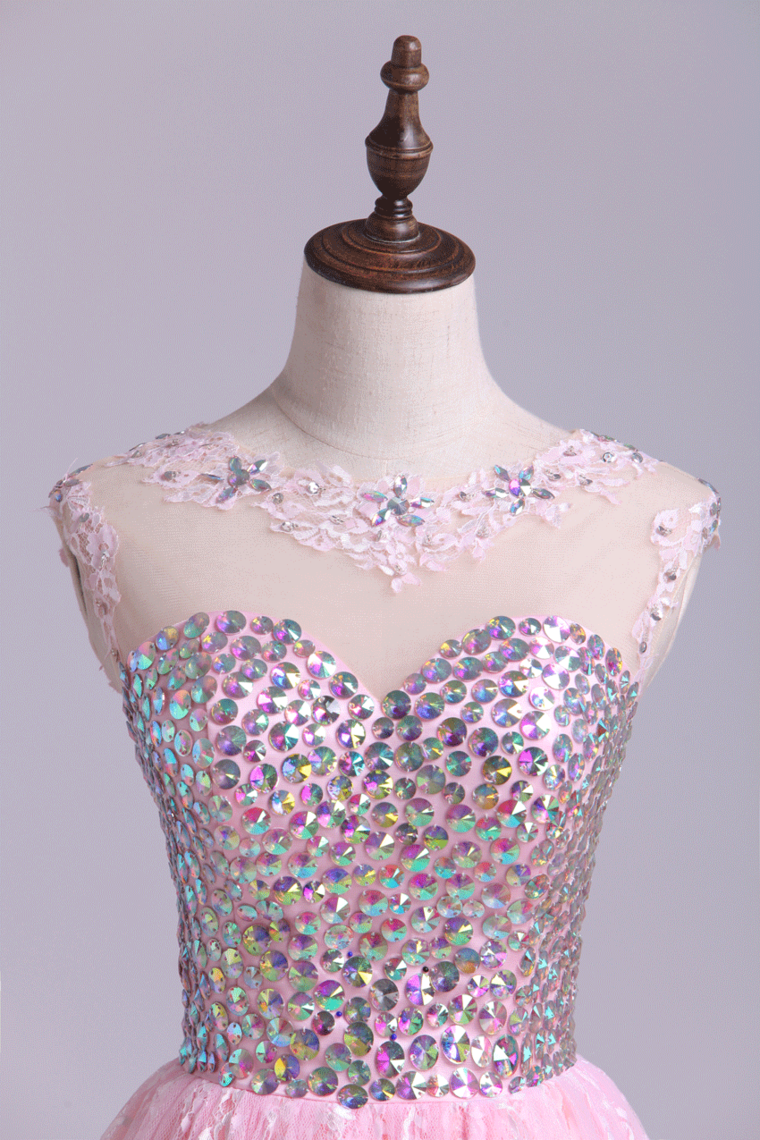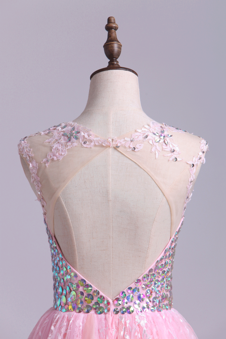 2022 Scoop Neckline Open Back A Line Tulle And Lace Short/Mini Homecoming Dresses