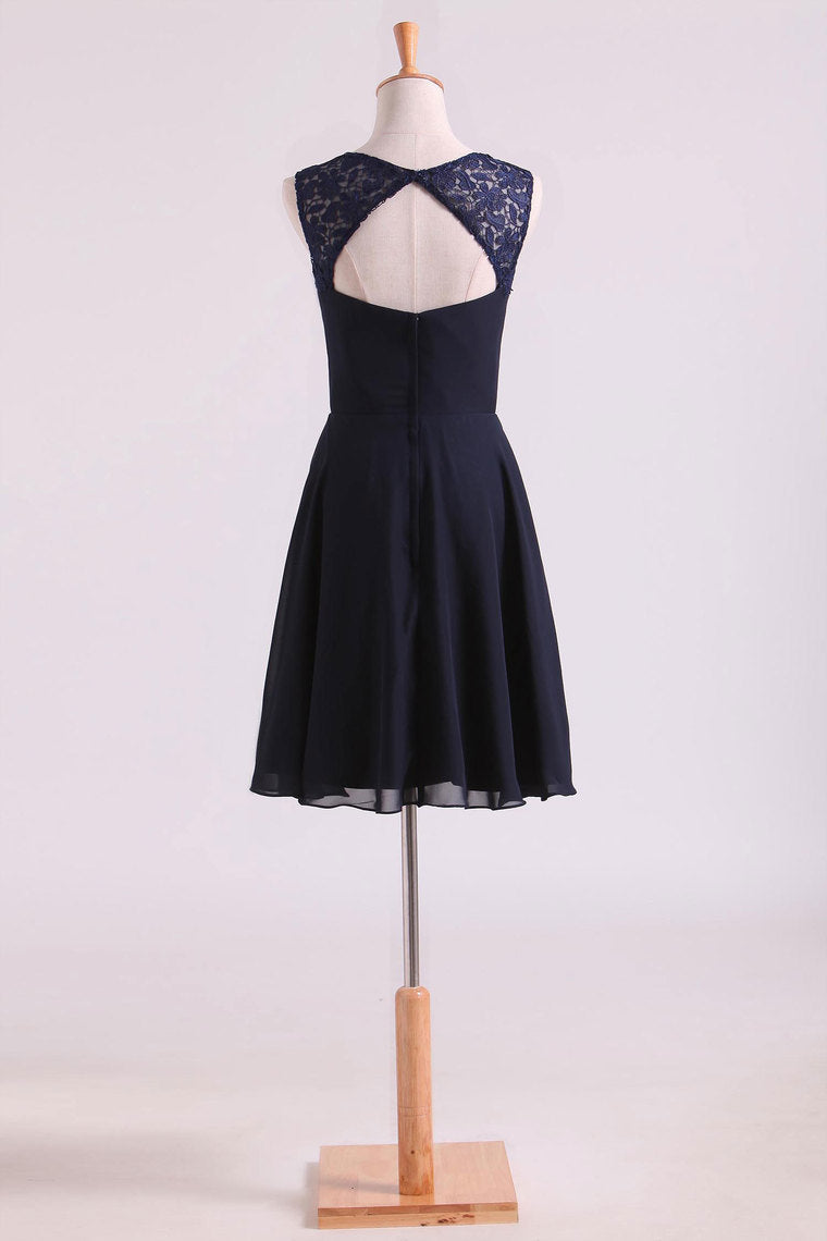2022 Scoop Open Back Above Knee Length Pick Up Flowing Chiffon Skirt