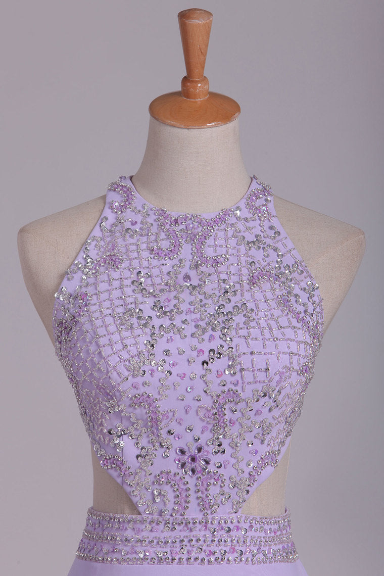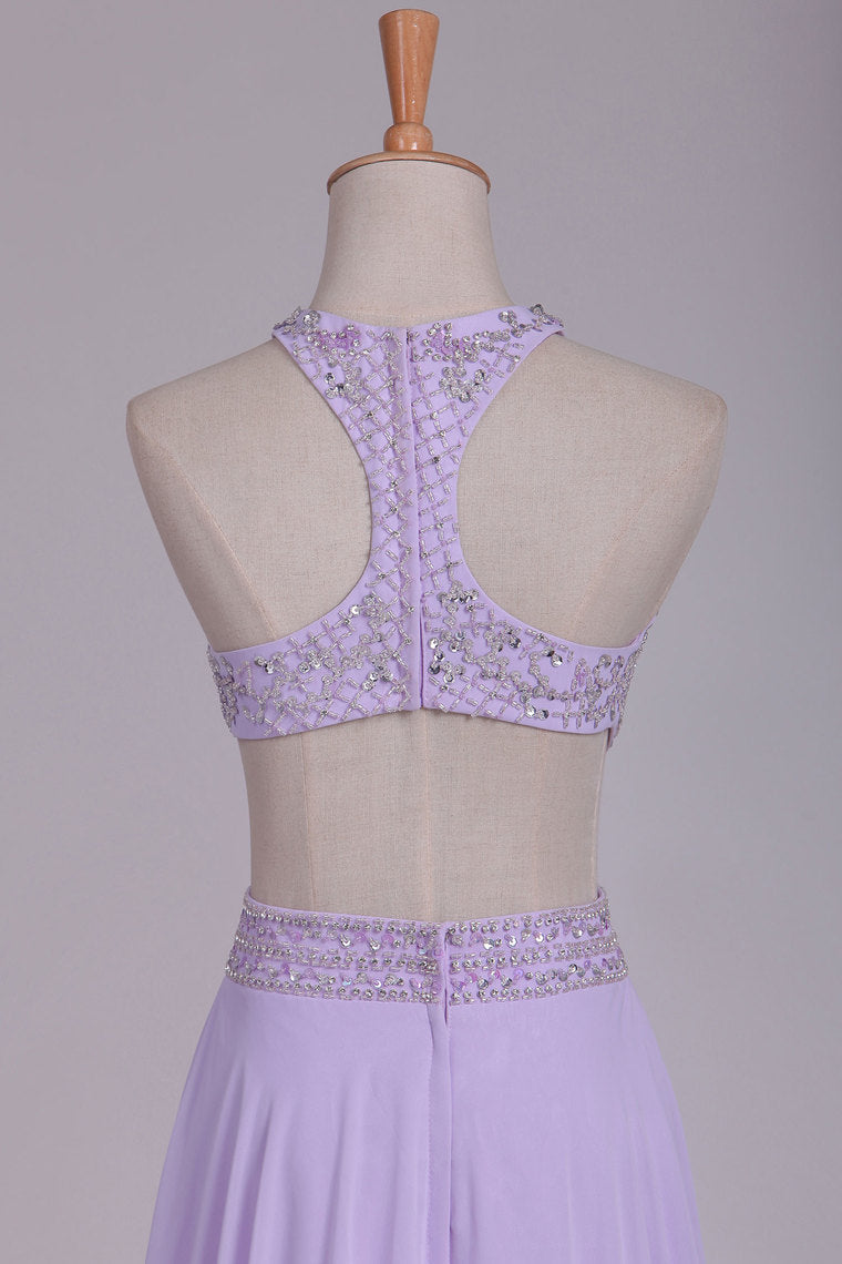 2022 Scoop Prom Dresses A Line Chiffon With Beading Sweep Train