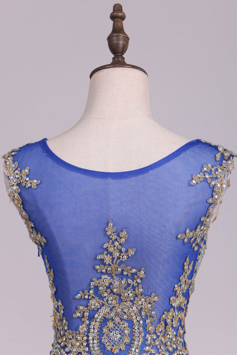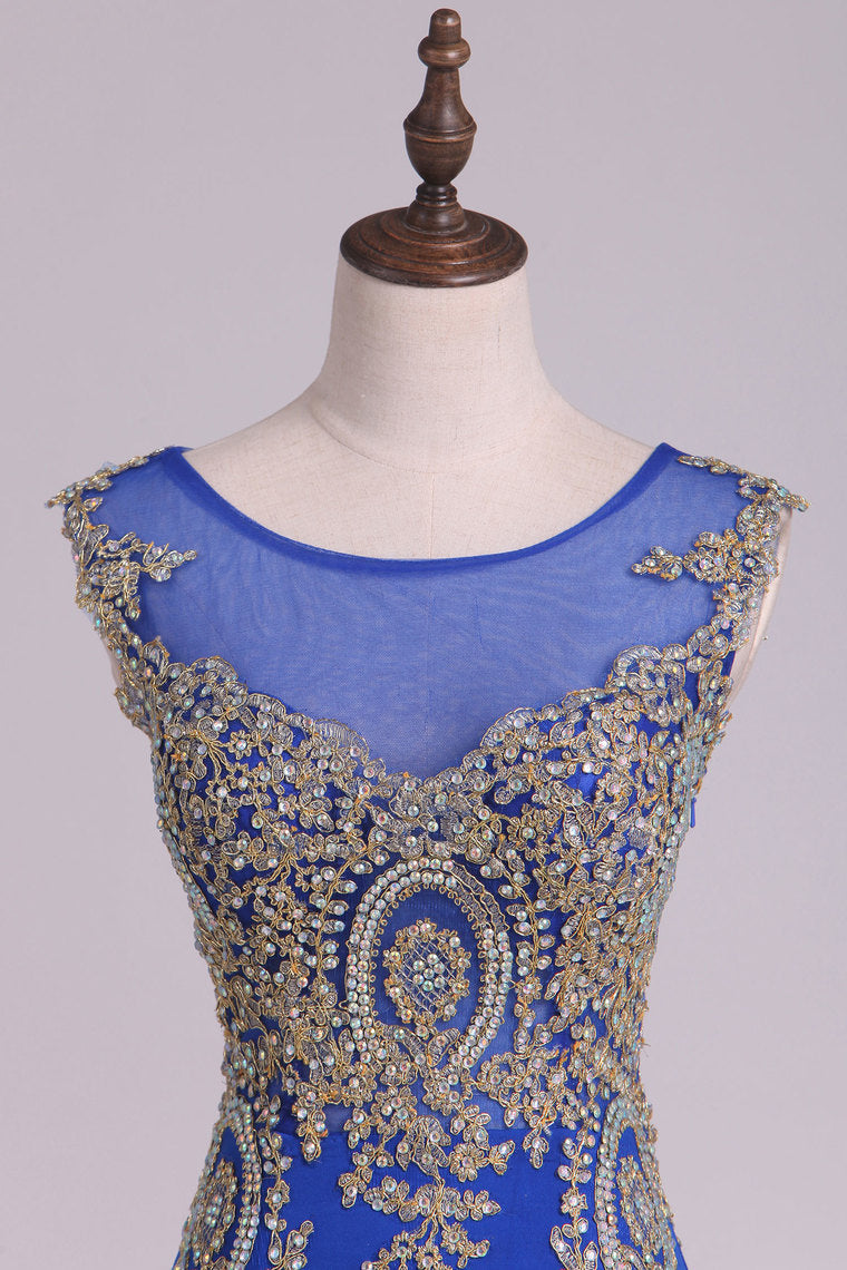2022 Scoop Prom Dresses Mermaid Spandex With Applique Sweep Train