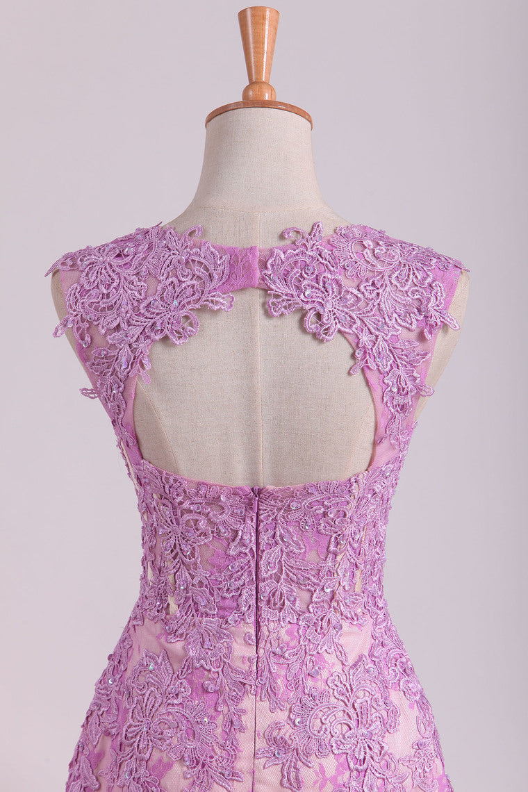 2022 See-Through Lace & Tulle Straps Prom Dresses Sheath With Beading And Applique