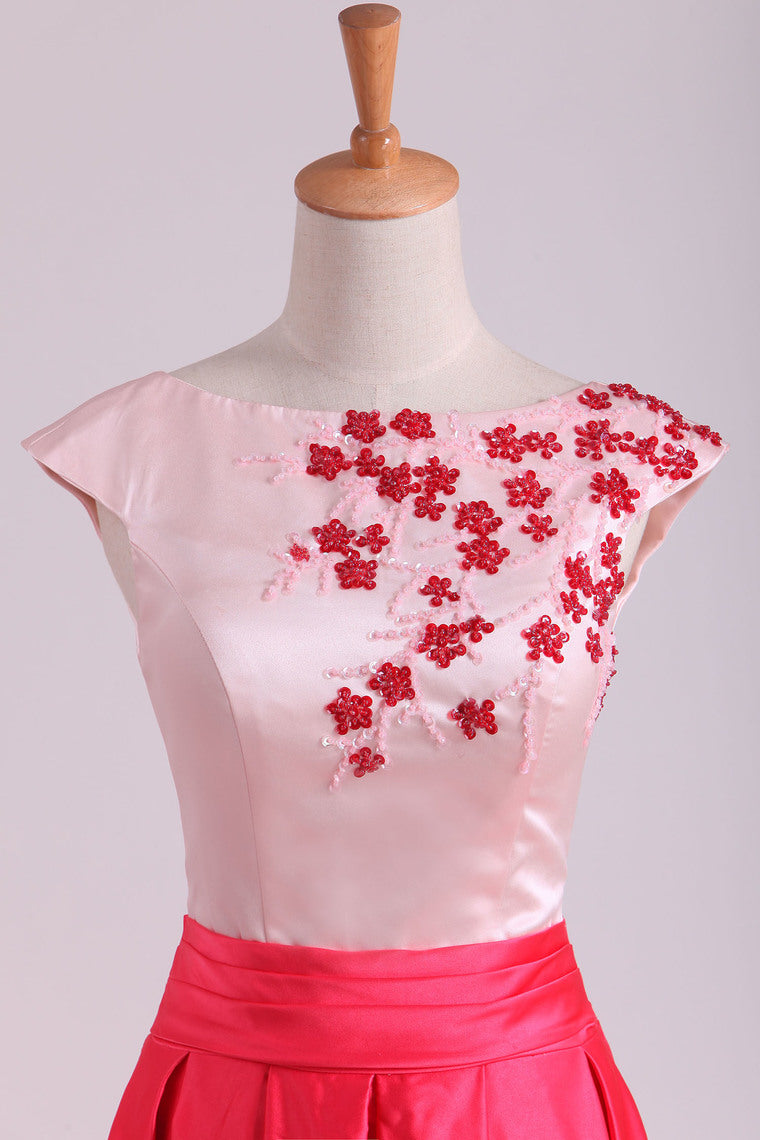 2022 Sexy Open Back Evening Dresses Scoop Satin With Beads A Line
