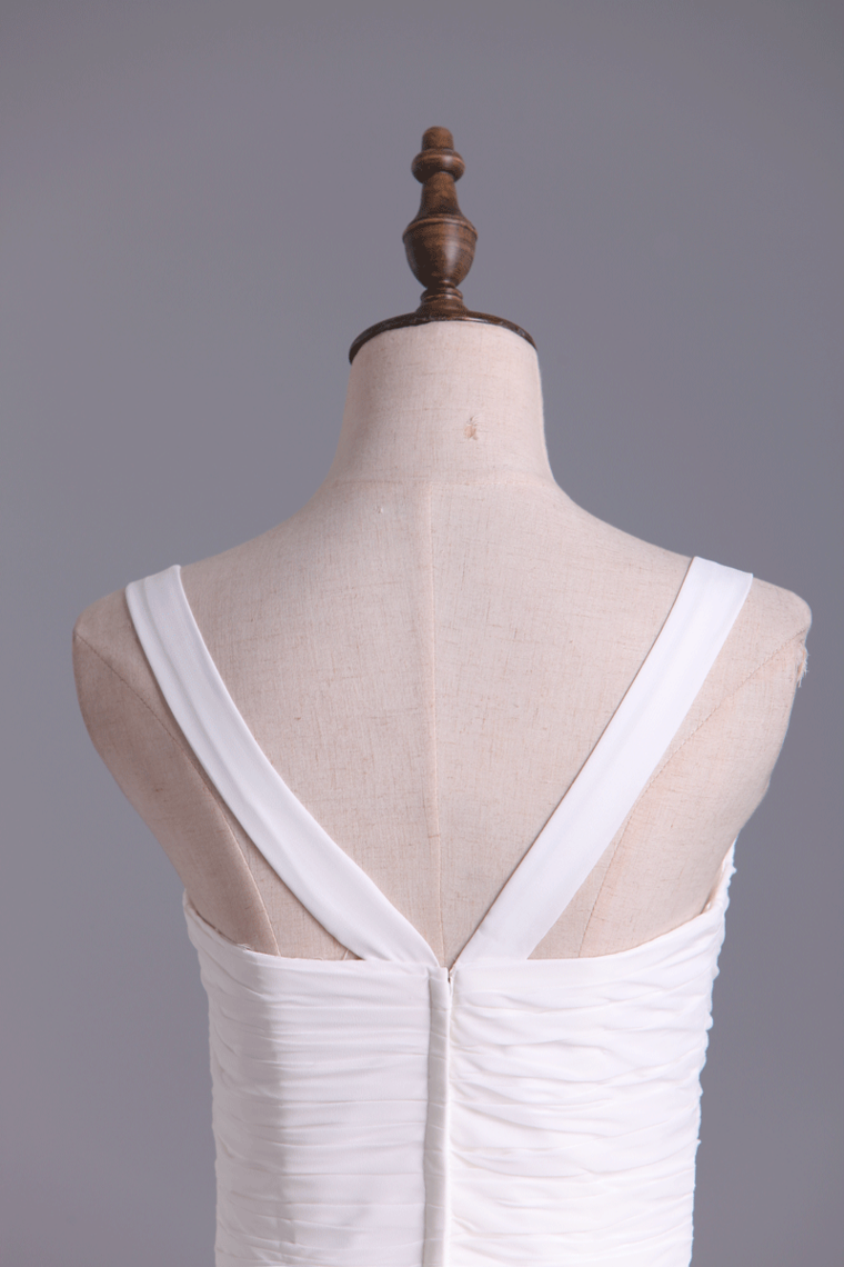 2022 Spaghetti Straps A Line Pleated Bodice Full Length Dress With Shirred Chiffon Skirt