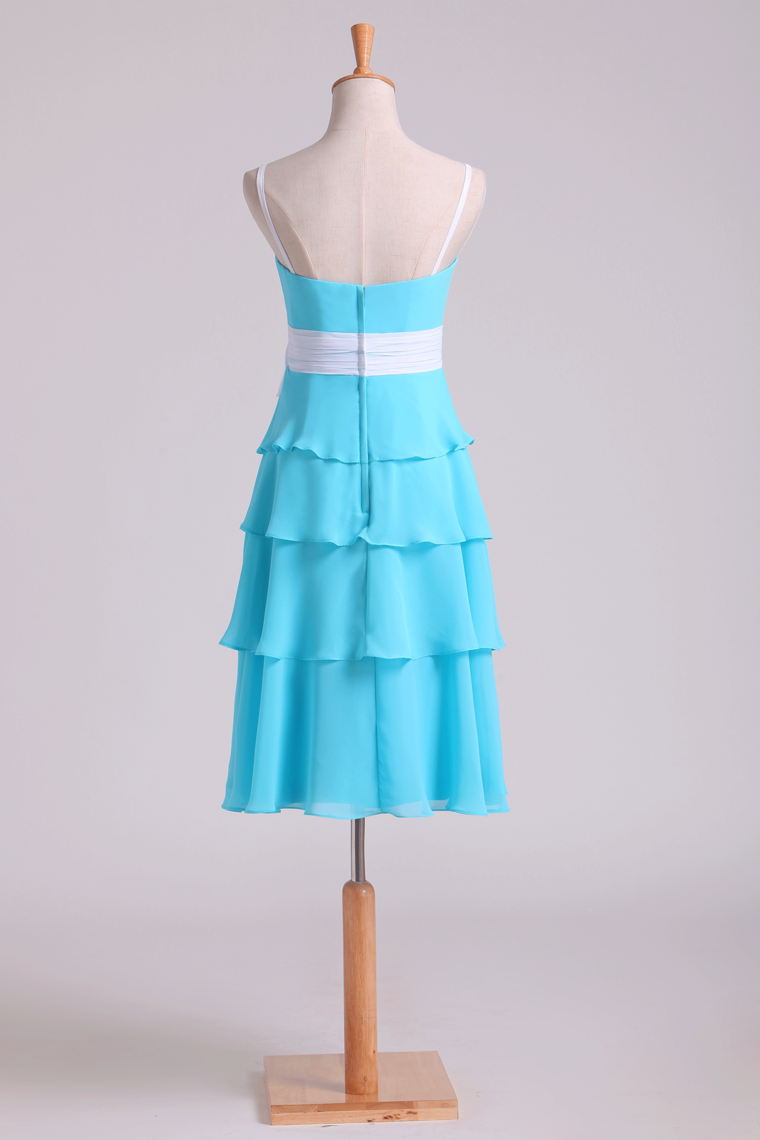 2022 Spaghetti Straps Empire A Line Knee Length Bridesmaid Dresses