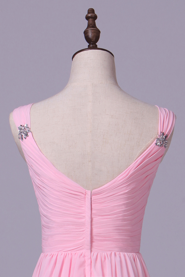 2022 Straps Bridesmaid Dresses A Line Chiffon With Ruffles Floor Length