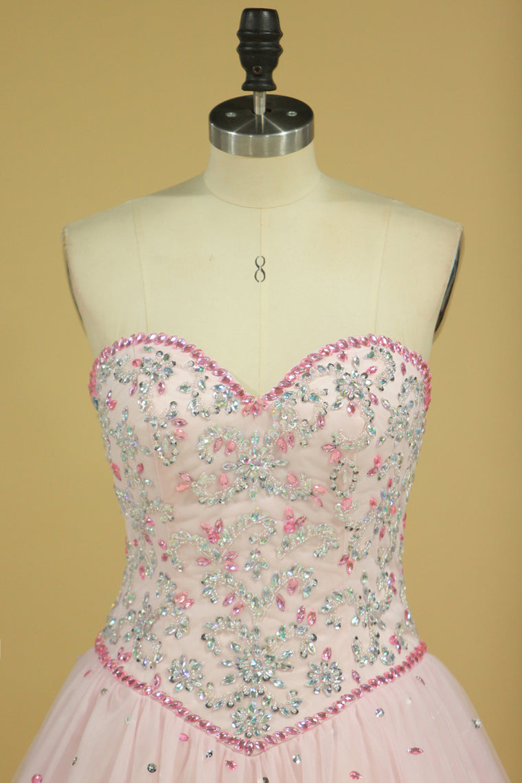 2022 Sweetheart Ball Gown Quinceanera Dresses Tulle With Beads And Rhinestones New