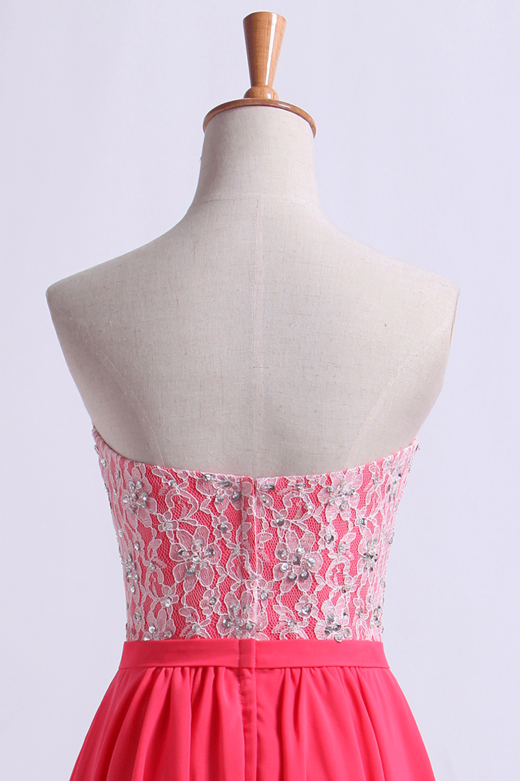 2022 Sweetheart Lace Bodice A-Line Cocktail Dresses With Beading Chiffon