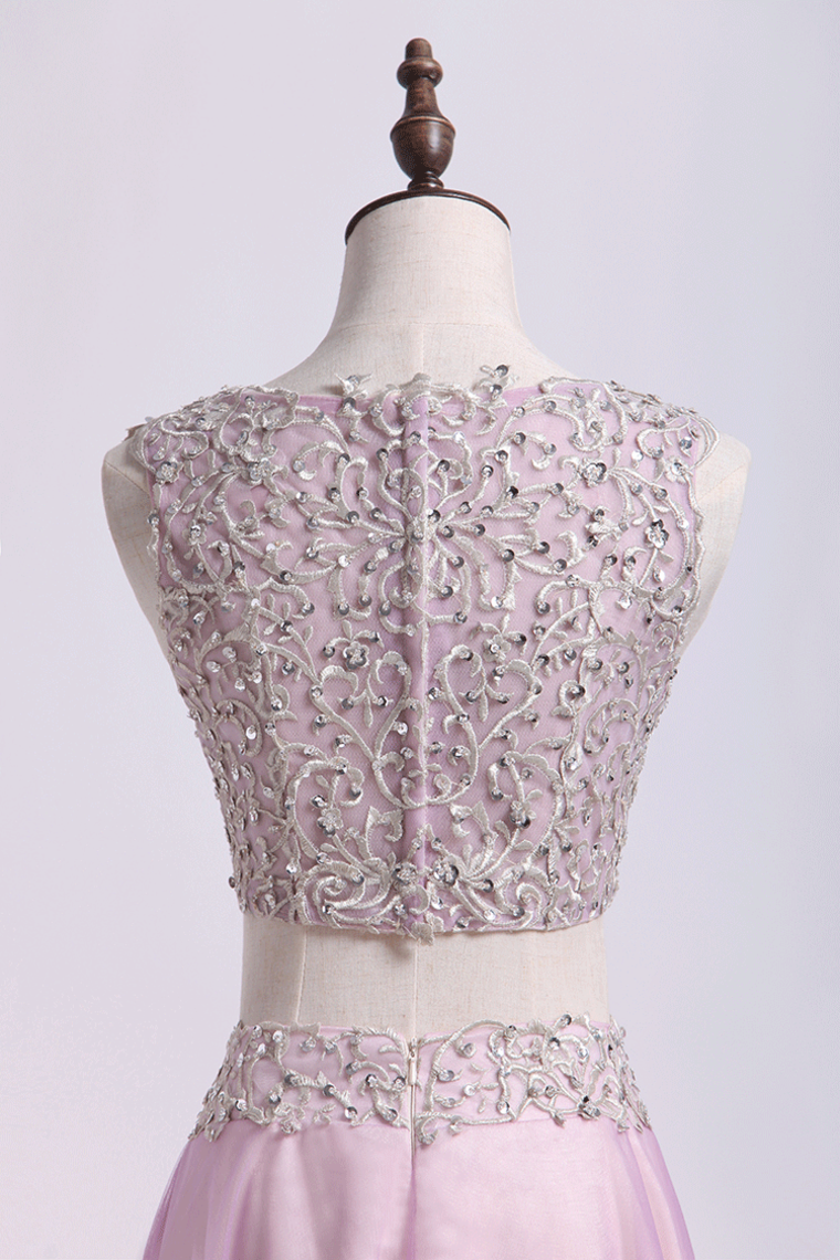 2022 Two-Piece Scoop Cocktail Dresses A-Line Tulle With Applique Knee Length