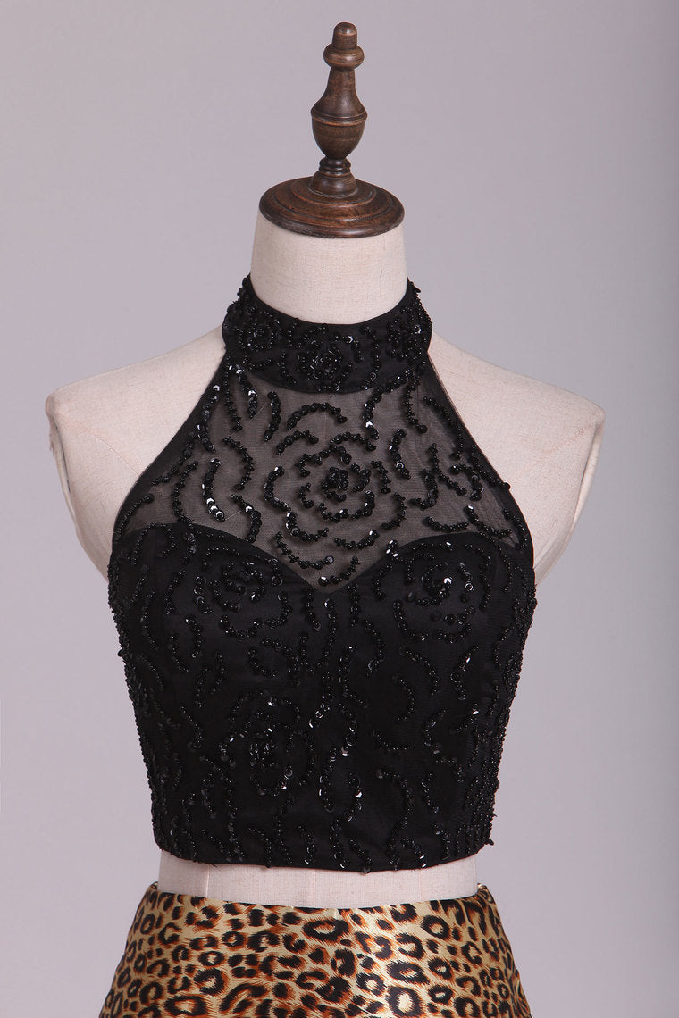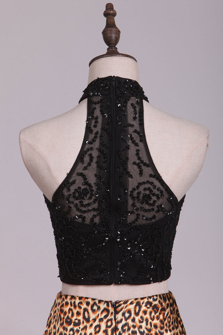 2022 Two Pieces Mermaid Prom Dresses High Neck With Beading Sweep Train
