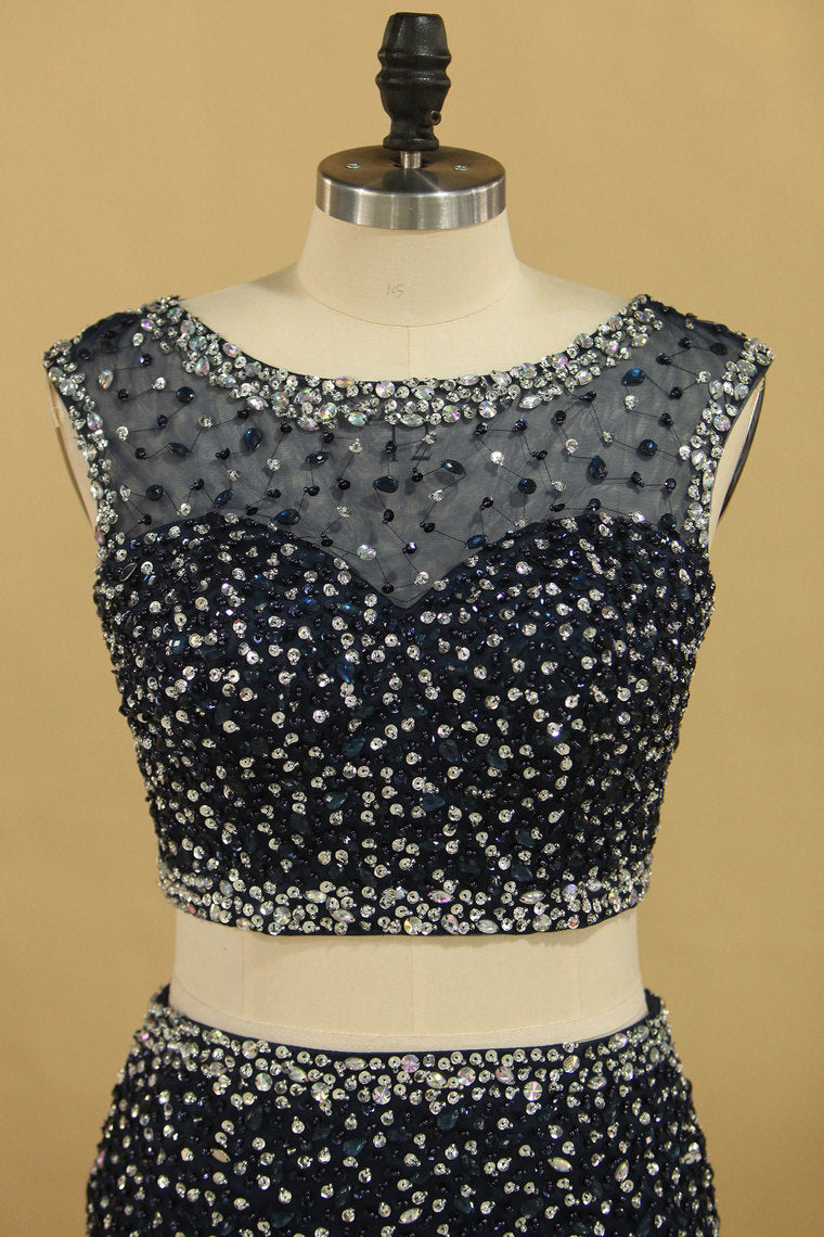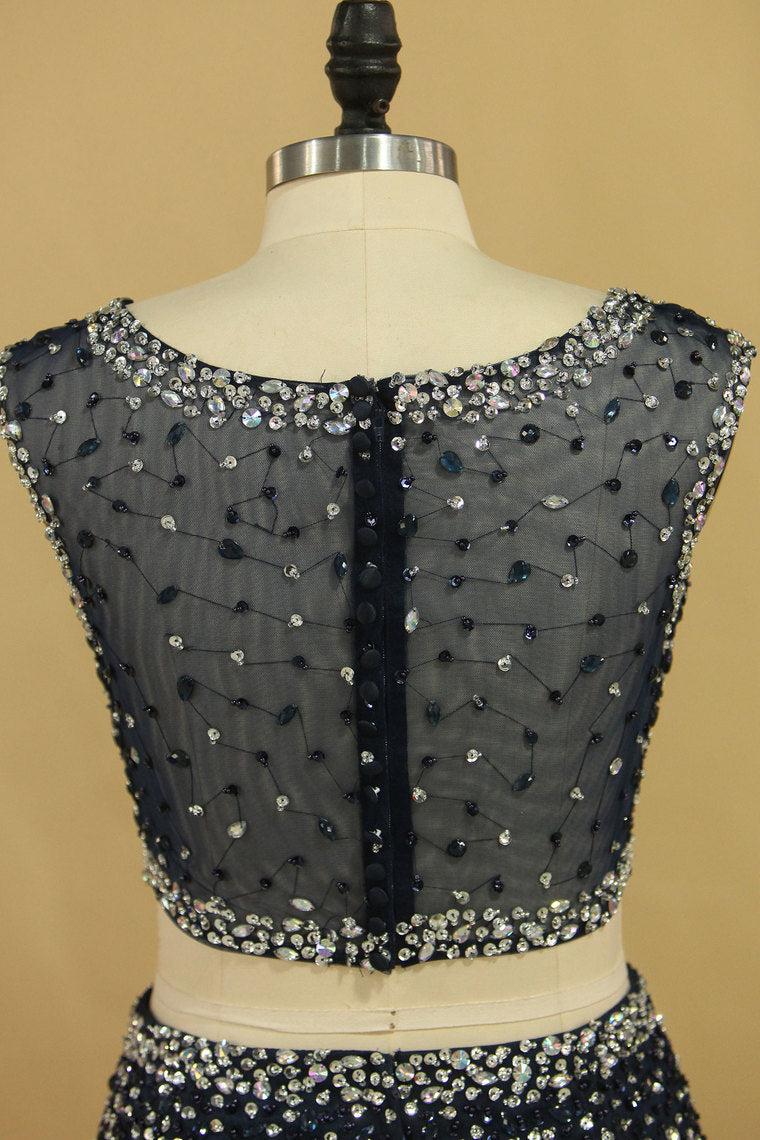 2022 Two Pieces Scoop Mermaid Beaded Bodice Prom Dresses Floor Length Tulle