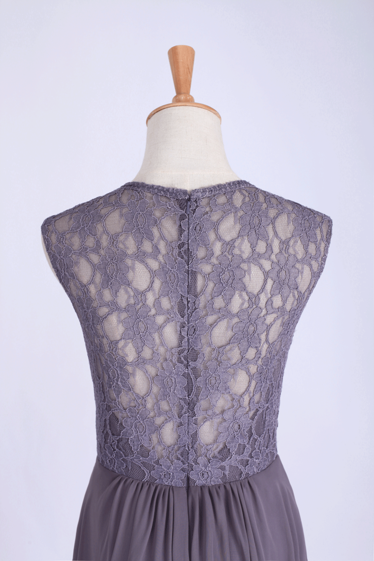 2022 V-Neck A Line Bridesmaid Dresses Floor Length Lace & Chiffon