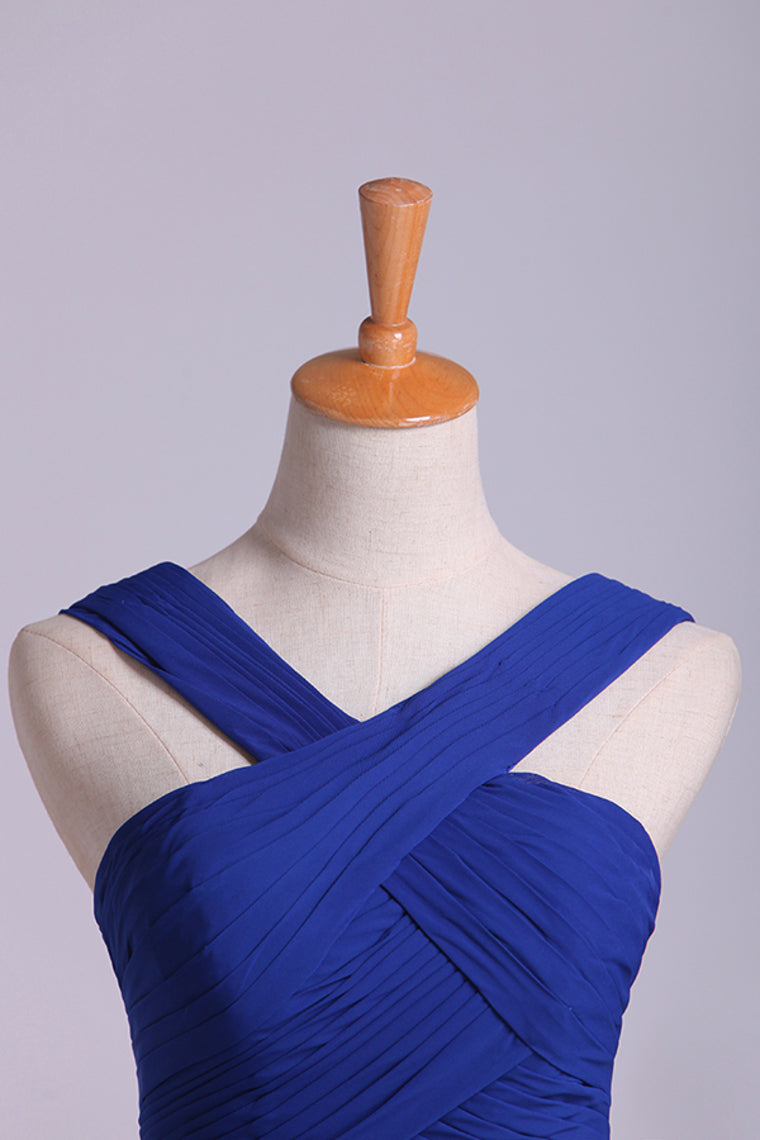 2022 V-Neck Bridesmaid Dresses A Line Knee Length Chiffon Pleated Bodice